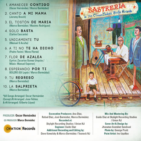 En la portada se aprecian dos imágenes combinadas del artista, mientras que en la contracarátula se incluyó una obra del pintor y poeta ecuatoriano Ivo Uquillas, amigo de la infancia de Marco Bermúdez, en la que se retrata la sastrería del abuelo del cantante, don Clímaco Piadoso Brito Miranda. El niño sentado es el propio Marco cuando era pequeño. Salsa dura, romántica, bolero, mensajes llenos de romanticismo, tradicionales de Ecuador y Puerto Rico hacen parte de este debut discográfico como líder del gran vocalista Marco Bermúdez.