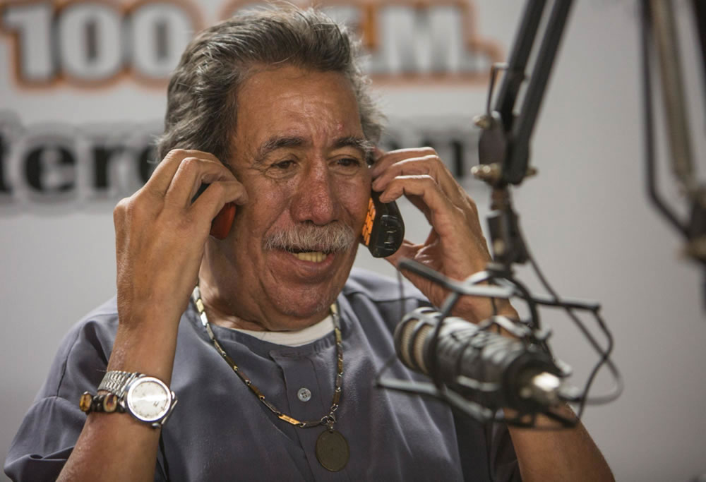 Pamela Henríquez, una de las locutoras y quien también hace el control de sonido del programa de Orlando, sonríe con respeto y Kco Builes, uno de los propietarios de la emisora, suelta una carcajada.