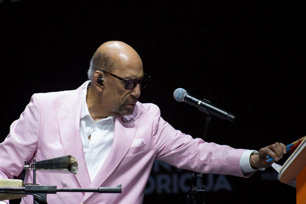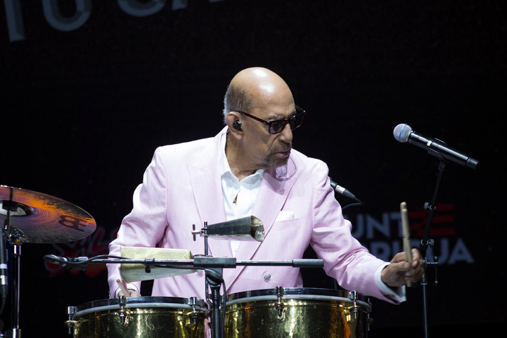 Así con el alma ya vibrando, y en medio de la ovación de los 18 mil asistentes, ingresa el maestro. Sin mediar palabra, pero con evidente emoción, tomó las baquetas de manos de Gerardo Gabriel e hizo el conteo para que empezara el muy conocido primer acorde de uno de sus temas más icónicos “De barrio obrero a la 15”, que cantara originalmente Chamaco Rivera, quien efectivamente entró a la tarima demostrando que 46 años después es uno de los preferidos por el público. Dos temas más: “Ojalá que te vaya bonito” y “Anuncio clasificado” ambos interpretados por los cantantes actuales de la orquesta, Jose Luis y Machete.