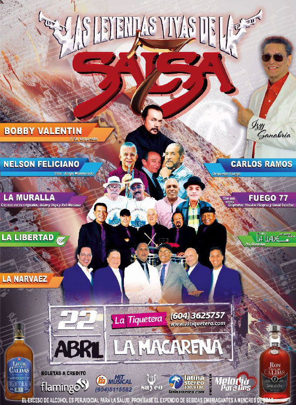 El concierto Las Leyendas Vivas de la Salsa tendrá lugar en el centro de eventos La Macarena el próximo sábado 22 de abril de 2023 en la ciudad de Medellín